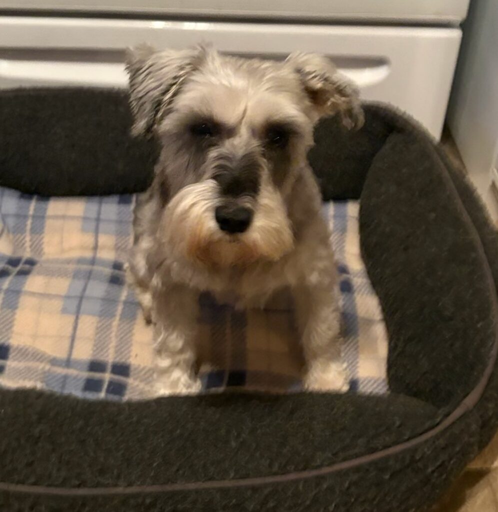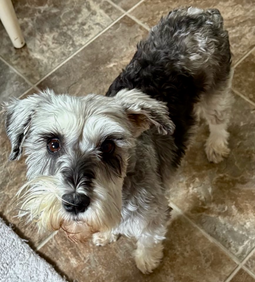 Candy is a 6 year old miniature Schnauzer; a retired breeder. She is initially shy but very much a lap dog, once she is comfortable. Candy is fully vetted with required vaccinations, spayed, heart worm negative; and she had a dental cleaning. She is crate trained and doing well on house training. She is good with other dogs and probably older children. Candy is not yet leash trained so a fenced yard is required (physical fence, not electronic). If you are interested in adopting her, please contact her foster mom Mary at (574) 524-6040. Leave a clear text or voicemail, including your name, phone number, and where you live. She will respond as soon as possible.